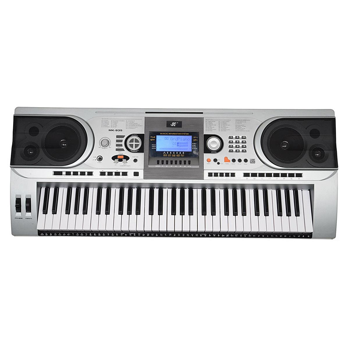Type: Portable digital/electronic keyboard Keys: 61 standard-size keys (5 octaves) Display: LCD screen for functions and settings Tones/Voices: 128 instrument voices (piano, guitar, violin, drums, etc.) Rhythms/Styles: 128 accompaniment rhythms (various genres and beats) Songs/Demo: Built-in demo songs for practice and play-along Functions: Record & playback Sustain, vibrato, transpose, and tuning functions Single-finger and multi-finger chord modes Dual teaching mode (ideal for learning) Connectivity: USB port (for MP3 playback or MIDI connection) Microphone input Headphone jack Aux/Line out for external speakers Speakers: Dual built-in stereo speakers (good for practice at home) Power: AC adapter or batteries (portable use) Extras: Pitch bend wheel, percussion buttons, volume & tempo control