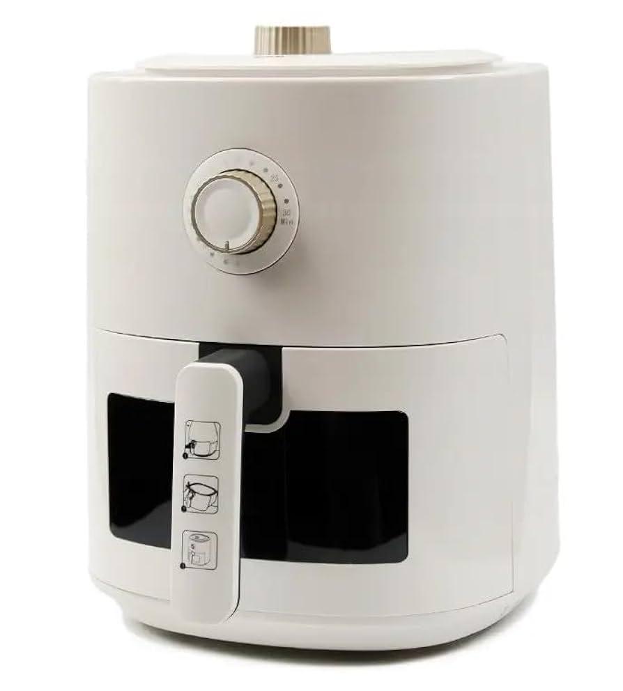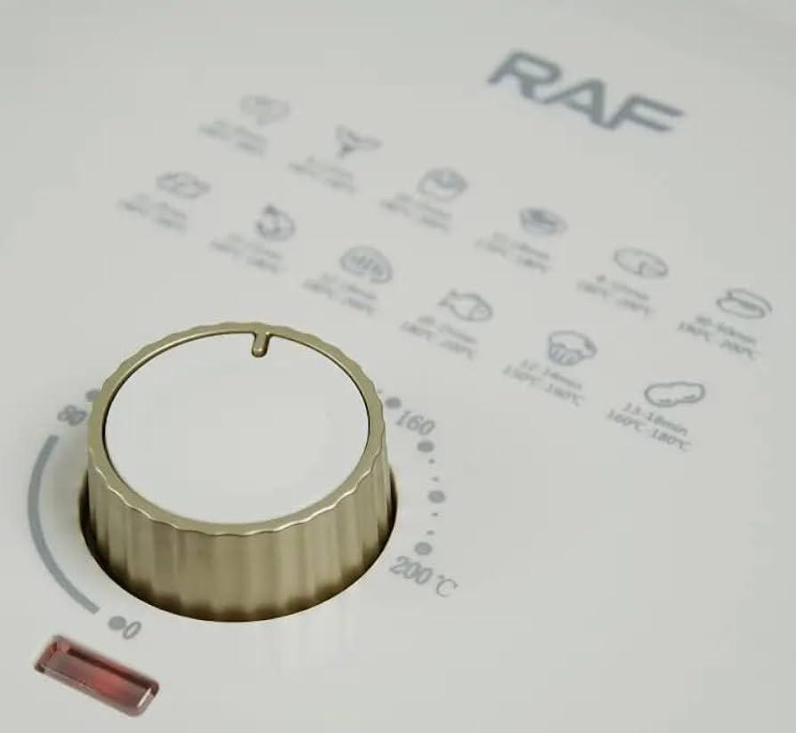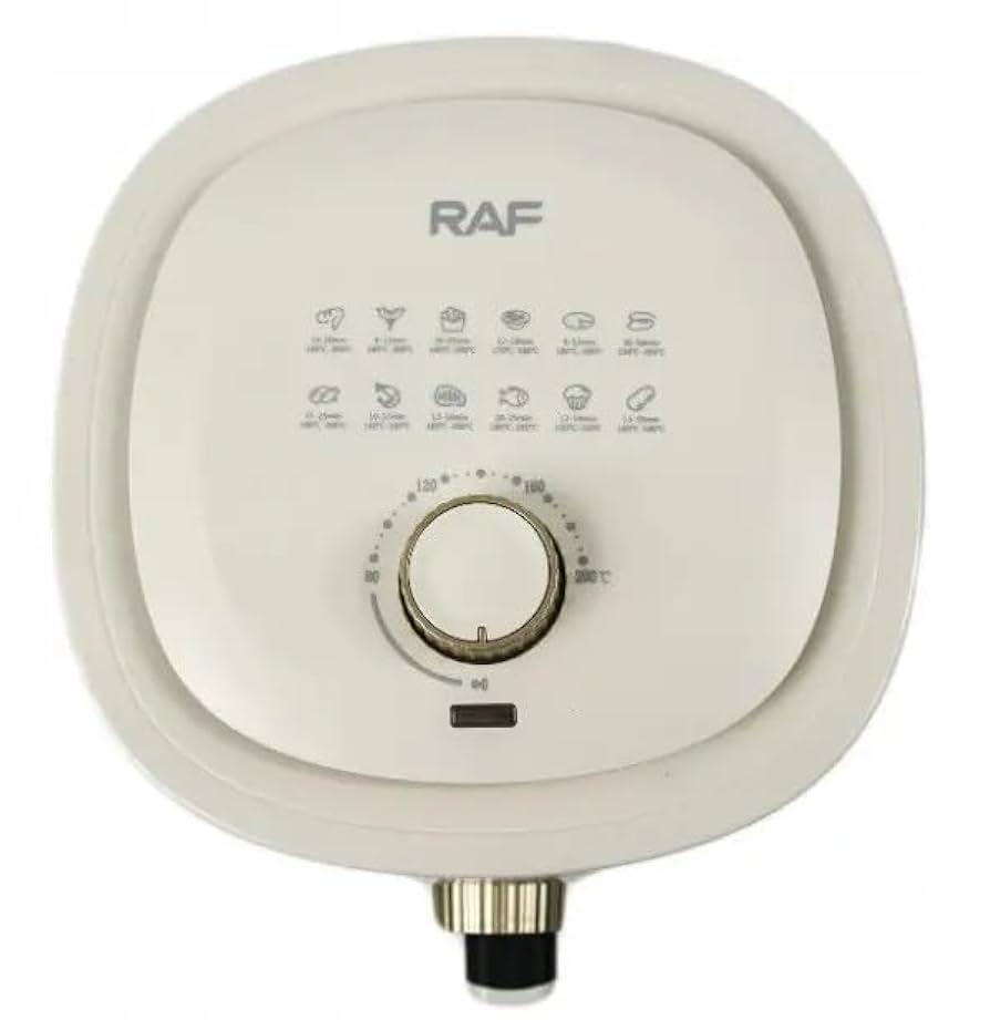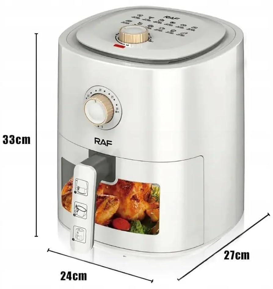 The RAF R5332W Air Fryer is a compact, stylish, and energy-efficient fryer designed to make healthier cooking simple and convenient. With a 4-liter capacity and 1300W power, it’s the perfect choice for small families, couples, or individuals who want to enjoy crispy, tasty meals with little to no oil. The fryer comes with manual temperature and timer controls, offering ease of use and versatility. 🔧 Key Features Capacity: 4 Liters – Suitable for daily meals and small households. Power: 1300W – Energy-efficient performance with fast heating. Control Type: Manual dials for time and temperature. Temperature Range: Adjustable up to 200°C. Timer Function: 0–30 minutes with automatic shut-off. 360° Hot Air Circulation – Ensures food cooks evenly and crisps beautifully. Healthy Cooking: Uses up to 80% less oil compared to traditional frying. Elegant White Design: Compact body with clear viewing window. Easy Cleaning: Removable non-stick basket and tray for quick maintenance. 📦 Specifications Model: RAF R5332W Capacity: 4L Power: 1300W Controls: Manual (temperature & timer knobs) Timer: 0–30 minutes Temperature Range: Up to 200°C Body Color: White with silver accents Functions: Fry, bake, roast, grill, reheat