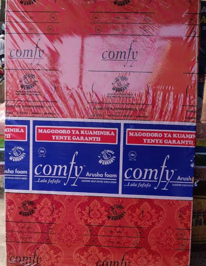 Quality foam from Comfy A 5*6, 6-inch Comfy (or similar brand) mattress in Tanzania is a popular, standard-sized queen bed mattress ( or ) with a 6-inch thickness, suitable for standard bedrooms and comfortable for daily use by adults. It often features medium-firm foam for support Dimensions: 5 feet wide by 6 feet long ( ). Thickness: 6 inches (approx. ), offering a balanced, standard comfort profile. Type: High-density foam (e.g., Comfy, Vita Foam, Tan Foam). Firmness: Generally medium-firm to firm, providing decent support for the back and neck. Usage: Ideal for master bedrooms, guest rooms, and adults.