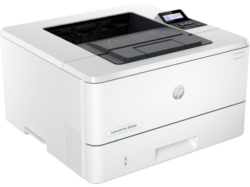 The HP LaserJet Pro 4003dn is a monochrome (black-and-white) laser printer designed for busy offices and work-teams with high-volume printing needs. It combines fast printing, automatic duplexing (two-sided printing), network connectivity and robust design for reliable performance. HP +2 HP +2 Key Features & Benefits Print speed: Up to 42 pages per minute (ppm) for letter size (or up to 40 ppm for A4) in black and white. HP +1 Two-sided (duplex) printing: Built-in automatic double-sided printing helps save paper and enable efficient workflows. Printerland +1 High print quality: 1200 × 1200 dpi fine lines resolution for sharp text and clear lines. HP Support +1 Robust paper handling: Standard input trays: a 100-sheet multipurpose tray + 250-sheet tray. Output bin holds ~150 sheets. Optional extra trays can be added for larger capacity. Printer Thailand +1 Network & USB connectivity: Includes Gigabit Ethernet (10/100/1000 BASE-T) for office network printing; also USB port. Excellent for workgroups. HP Suitable for workteams: Rated for a monthly duty cycle of up to 80,000 pages (though HP recommends a “typical monthly” of ~750-4,000 pages for optimal life). Goldreef +1 Compact footprint with strong build: Weighs about 8.56 kg; footprint approx 381 × 357 × 216 mm (width × depth × height) in standard configuration. Goldreef +1 Security & manageability features: Comes with embedded security features (HP Wolf Pro Security), cloud- or network-based management, and is designed to support office IT policies. HP +1 Technical Specifications (Summary) Print Technology: Laser, Monochrome (black only) HP Supported Print Languages: HP PCL 6, HP PCL 5e, HP PostScript Level 3 Emulation, PDF, URF, PWG Raster. HP Memory: 256 MB standard. Processor: 1200 MHz. Goldreef Input Capacity (Standard): Tray 1: 100 sheets; Tray 2: 250 sheets. Maximum input (with optional trays): up to 900 sheets. HP Output Capacity: 150-sheet output bin. Printer Thailand Paper Sizes Supported: From small (e.g., 76 × 127 mm) up to standard A4/Letter, and some custom sizes/envelopes. HP Power Consumption: Active printing ~495 W; ready ~5.5 W; sleep/auto-off very low. Goldreef Weight & Dimensions: ≈8.56 kg; dimensions ~381 × 357 × 216 mm (excluding optional trays extended) Goldreef +1