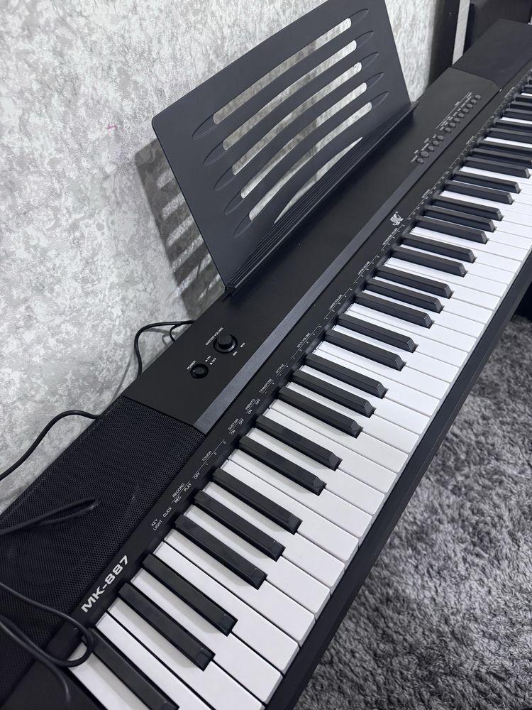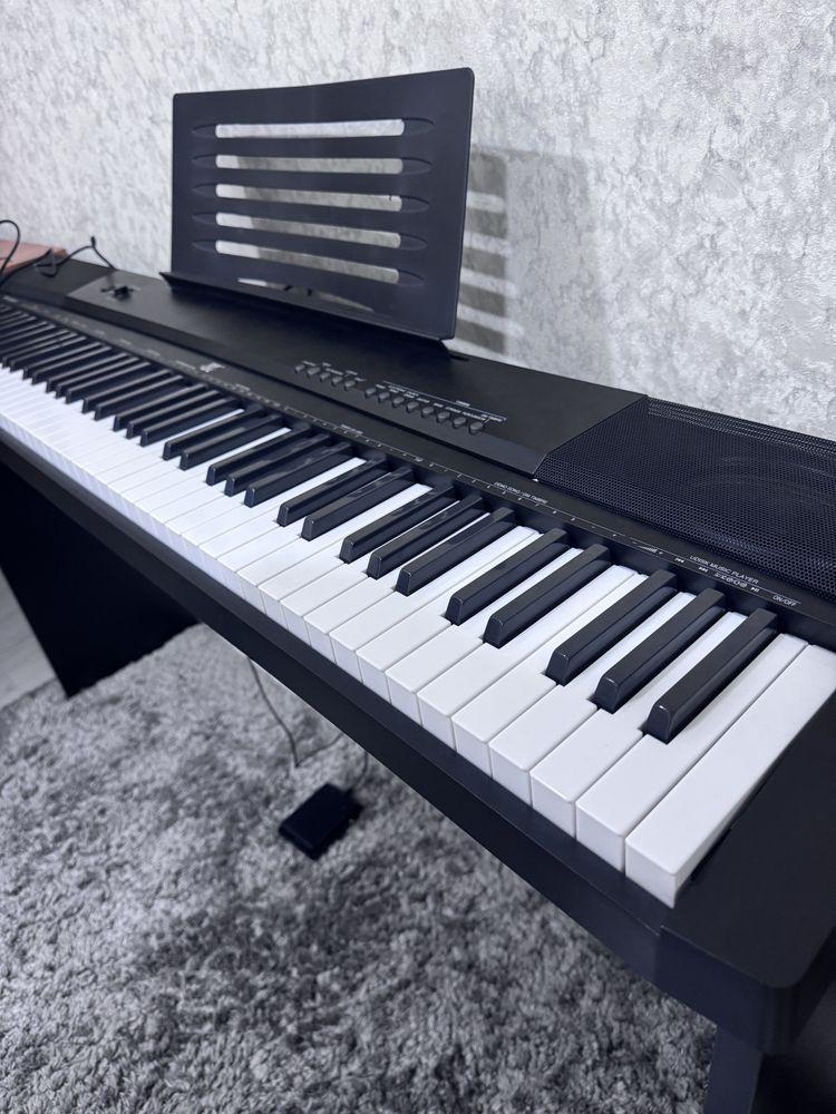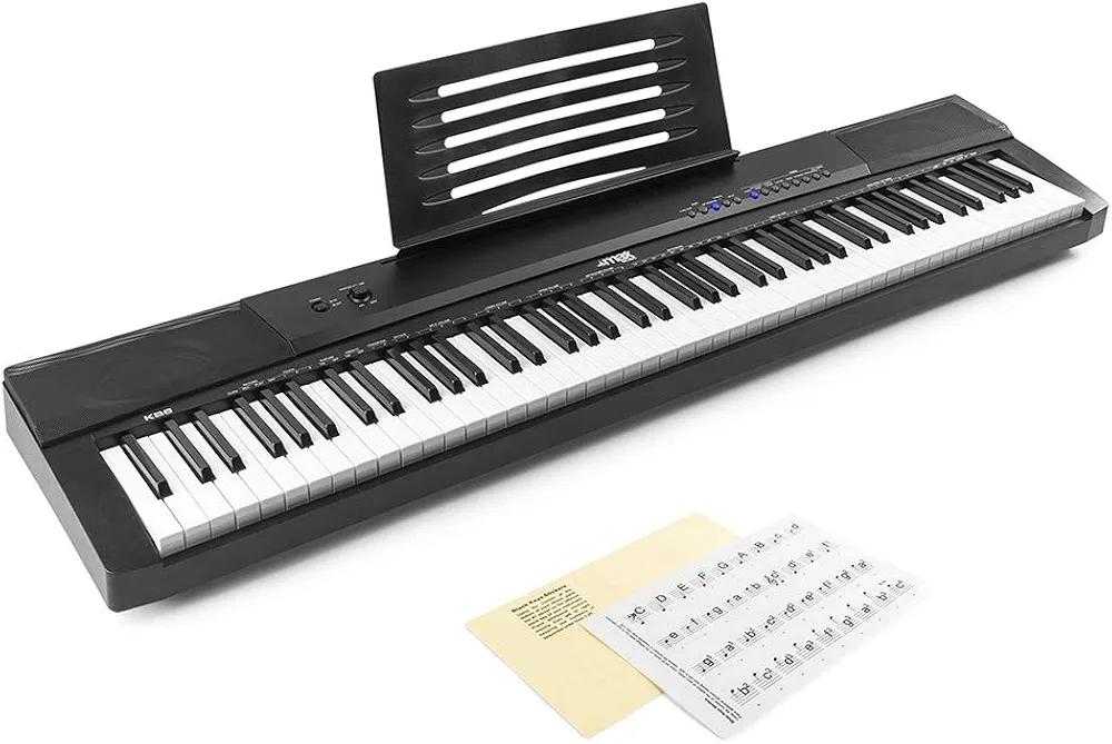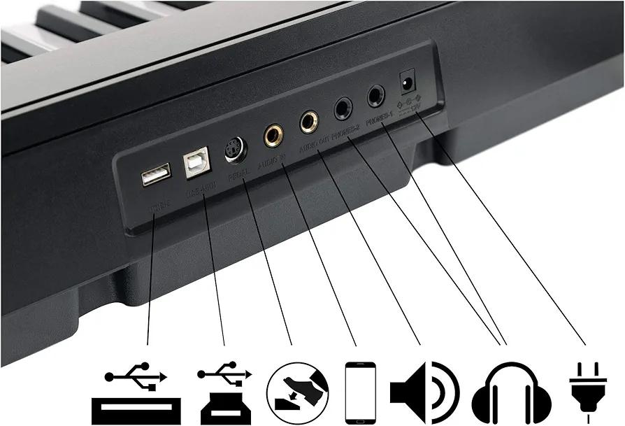 Type: Portable digital piano/keyboard Keys: 88 full-size keys (piano-style, semi-weighted) Design: Slim and lightweight, comes with music stand Voices/Tones: Multiple instrument voices (piano, organ, strings, etc.) Functions: Record and playback Sustain, transpose, and metronome functions Teaching/learning modes for beginners Connectivity: USB/MIDI for computer connection Headphone jack (silent practice) Aux out for speakers/amplifier Microphone input (some models) Speakers: Built-in stereo speakers for practice and small performances Power: AC adapter (with option for battery power in some versions) Accessories: Music stand, key stickers for note labeling