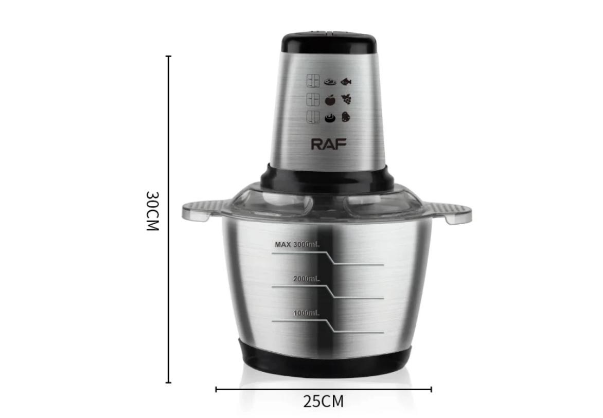Upgrade your food preparation routine with the RAF R.7034 Food Chopper, designed for quick, efficient, and mess-free chopping. Its compact yet powerful design makes it an essential appliance for modern kitchens, whether you're prepping meals for one or whipping up sides for a family dinner. ⚙️ Top Features: 🔋 800W High-Performance Motor Powerful enough to cut through meat, vegetables, herbs, and nuts in seconds—saving time and energy. 🥣 2.0L Stainless Steel Bowl Durable, rust-resistant, and odor-free. Perfect for chopping, blending, and mixing your ingredients hygienically. 🌀 Sharp 4-Blade System Equipped with ultra-sharp stainless steel blades arranged for fast and uniform chopping performance. 🧼 User-Friendly & Easy to Clean Simple one-touch operation and removable parts make this chopper effortless to use and maintain. 🛡️ Safety First Design Features non-slip base and safety lock to ensure stable and secure operation every time. 📐 Specifications: Model: R.7034 Power: 800W Capacity: 2.0 Liters Blades: 4 stainless steel chopping blades Material: Stainless steel bowl and body Application: Meat, vegetables, fruits, onions, baby food, nuts
