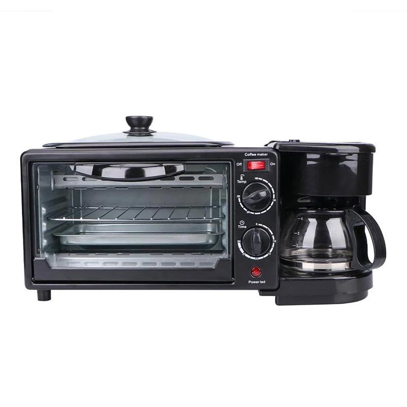 Kick-start your mornings with the ultimate all-in-one breakfast station – the RAF 3-in-1 Breakfast Maker. This space-saving kitchen powerhouse combines a toaster oven, coffee maker, and grill/frying pan in one sleek unit—perfect for homes, dorms, offices, or anywhere convenience and efficiency matter. 🔥 Key Features: 🍳 Multi-Function Combo Unit Includes a 9L oven toaster, a top non-stick grill/frying pan, and a 6-cup coffee/tea brewer. ☕ 6-Cup Coffee/Tea Maker Brew up to 6 cups of coffee or tea with the built-in pot, ideal for family or office use. 🔥 Top Grill/Frying Pan Cook eggs, sausages, bacon, or vegetables with the spacious heating plate. Comes with a glass lid for heat retention and safety. 🍞 Oven Toaster Bake or toast bread, pizza, or sandwiches. Includes timer control and heating settings for precise cooking. 🌡️ Temperature & Time Control Customize your cooking with easy-to-use knobs for temperature and timing across all three sections. 🔍 Visual Glass Oven Door Keep an eye on your food with the transparent oven window—no need to open and lose heat. 📦 Specifications: Model: R.5308B Oven Capacity: 9 Liters Coffee Brewer Capacity: 6 cups Top Grill Capacity: Spacious flat surface with tempered glass lid Control: Manual dials for time & temperature Power: 1200W (oven), 600W (grill), 600W (coffee maker) Voltage: 220-240V Material: Heat-resistant housing, non-stick cookware, glass & stainless steel components Color: Sleek Black