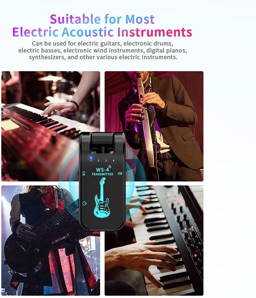 WS-4 Wireless Guitar System Guitar Transmitter Receiver for Electric Guitar Bass 48K/16bit Real-Time Transmission